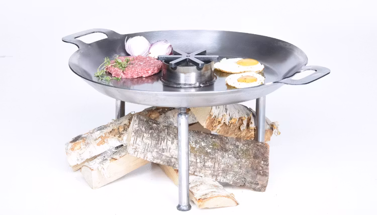 Stekhällen är multifunktionell, stor, har goda stekegenskaper och gör det möjligt att både steka, koka och grilla mat på samma gång. Passar utmärkt om du vill steka kött, fisk och grönsaker, laga olika risrätter eller steka pannkakor. I mitten av stekhällen finns ett hål (16 cm diameter) som är täckt med galler och som kan användas som spishäll eller för grillning av kött. Stekhällen rymmer tack vare sin höga kant upp till 8 liter mat och därför kan man även laga grytor på grillen eller öppen eld.